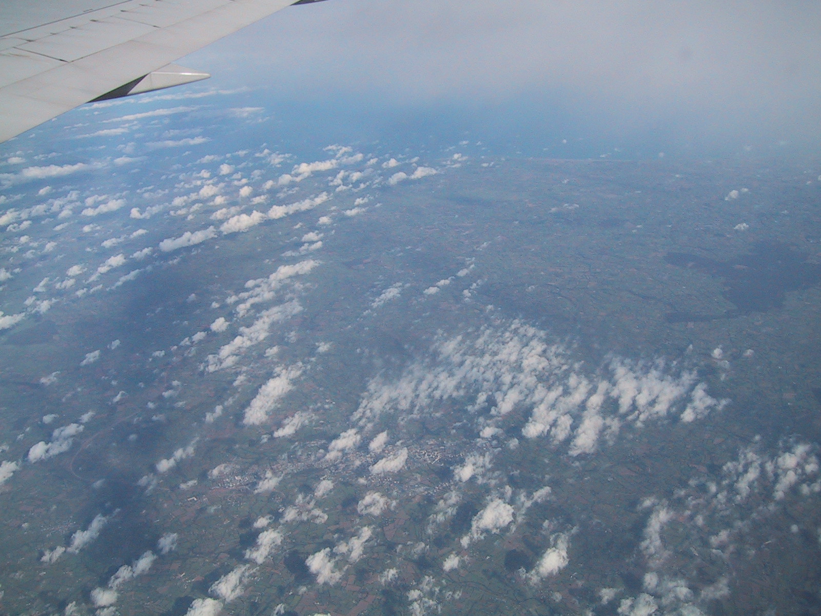 Notre route nous a fait passer au sud de l'Île de Jersey. En bonus, on peut voir l'ombre du 767 qui nous a transporté. |