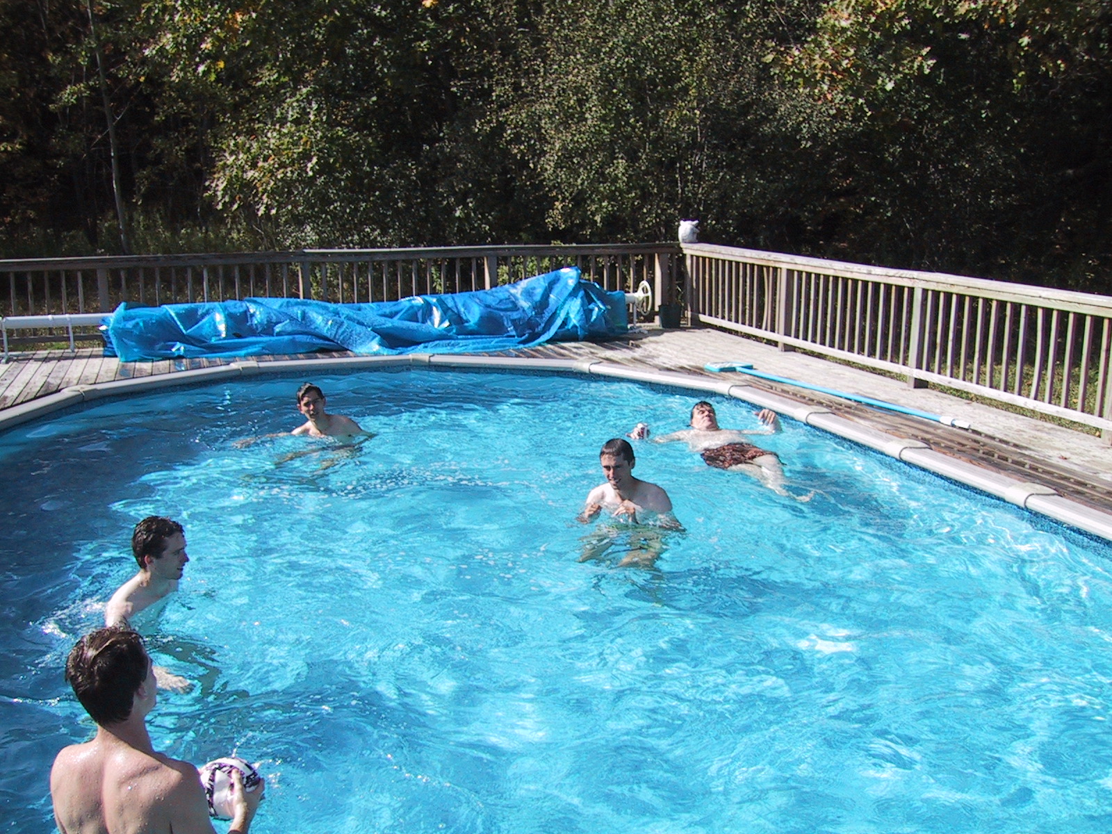 Maman va adorer cette photo: Nous voici entrain de faire semblant de prendre des boissons du bar flottant. Robert (à droite), fait même semblant de décapsuler une bière :-). À noter qu'après la piscine, on peut aller se reposer dans le jacuzzi ou alors dans le sauna... Mieux qu'à l'hôtel. |
